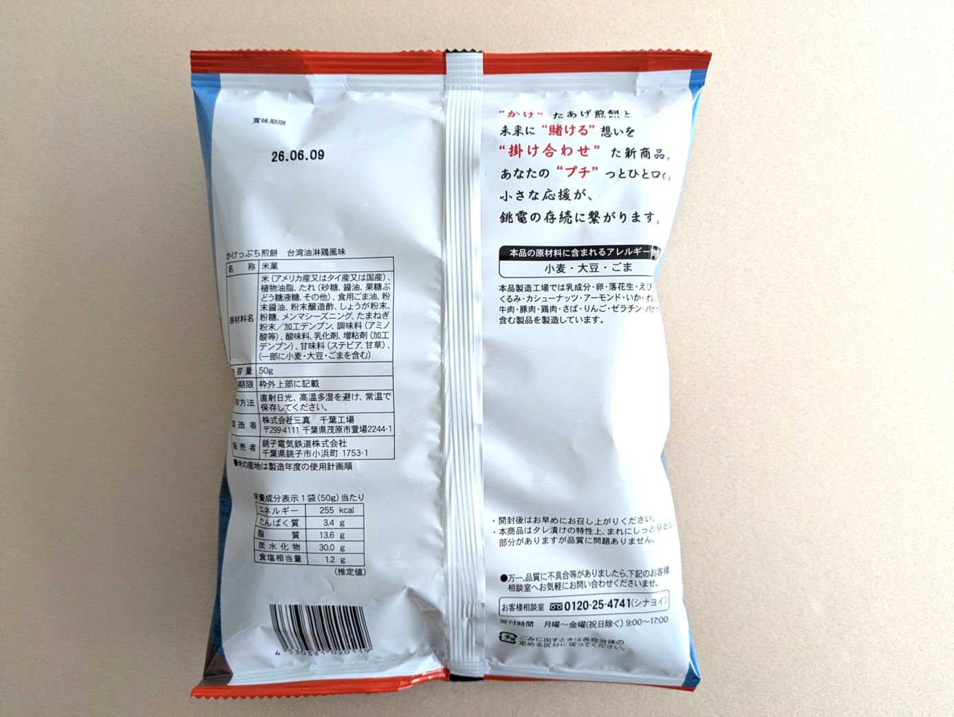 "かけ"たあげ煎餅と未来に"賭ける"想いを"掛け合わせ"た新商品。あなたの"プチ"っとひと口の小さな食感が、銚電の存続に繋がります。