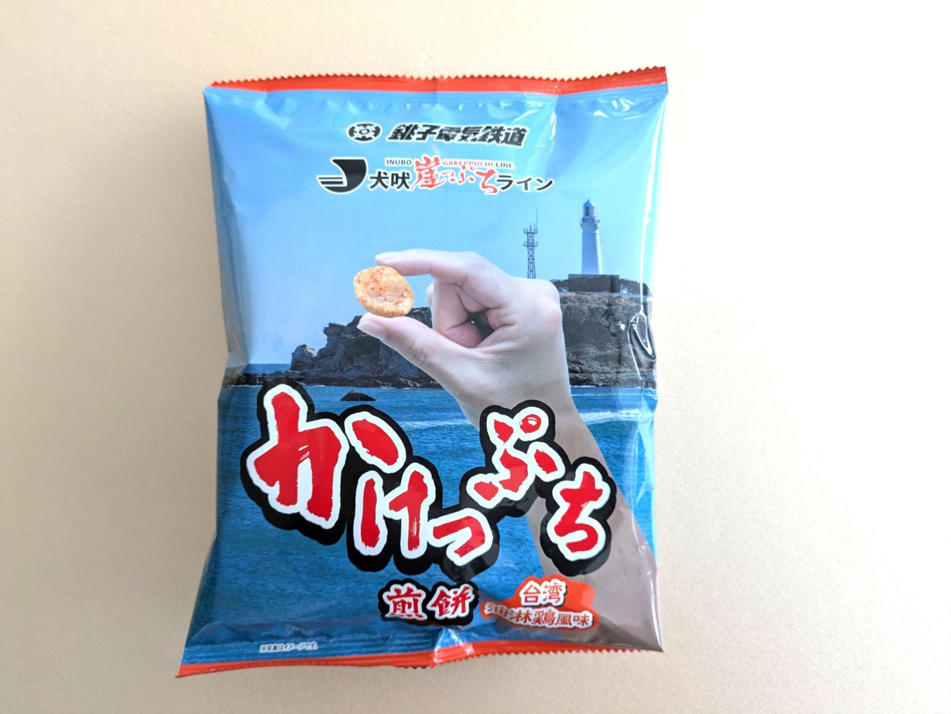 甘酸っぱい醤油ベースの味付けです。驚くほど、本当に油淋鶏を食べているような煎餅です。
